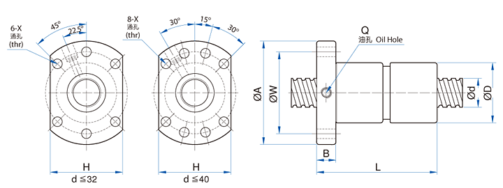 滾珠螺桿、螺母之基準參數 Dimensions 單位 : mm |