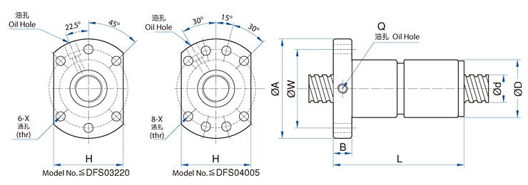 關于TBI絲桿螺母DFSR1605的安裝部位之精度,其必要頂目如下 : I : 導程, Da : 珠徑, n : 珠卷數, Ca : 動額定負荷(kgf), Coa : 靜額定負荷(kgf), K : 鋼性(kgf/μm) ★ : 可制作左螺紋