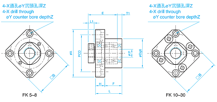 FK固定側絲桿支撐座外型尺寸: 單位:mm