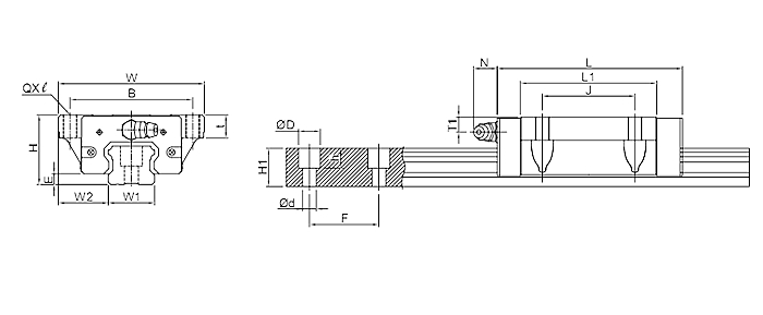 TBI線性滑軌TRH-F高組裝法蘭型系列規格尺寸表