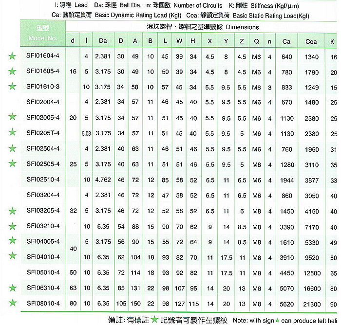 臺灣TBI滾珠絲桿SFI2005在使用時應注意以下事項: a.滾珠螺母應在有效行程內運動,必要時在行程兩端配置限位,以避免螺母約程脫離絲杠軸而使?jié)L珠脫落。 臺灣TBI滾珠絲桿SFI2005在安裝時應注意以下事項: a滾珠絲杠副僅用于承受軸向負荷。徑向力、彎矩會使?jié)L珠絲杠副產(chǎn)生附表面接觸應力等負荷,從而可能造成絲杠的永久性損壞。因此,滾珠絲杠副安裝到機床時,應注意:(1)絲杠的軸線必須和之配套導軌的軸線平行,機床的兩端軸承座與螺母座必須三點成一線;(2)安裝螺母時,盡量靠近支撐軸承;(3)同時安裝支撐軸承時,盡量靠近螺母安裝部位。 b.TBI滾珠螺桿安裝到機床時,請不要把螺母從絲杠軸上卸下來。如必須卸下來時要使用輔助套,否則裝卸時滾珠有可能脫落。螺母裝卸時應注意以下幾點:(1)輔助套外徑應小于絲杠底徑0.1-0.2mm;(2)輔助套在使用中必須靠緊絲杠螺紋軸肩;(3)卸裝時,不可使用過大力以免螺母損壞;(4)裝入安裝孔時要避免撞擊和偏心。 |