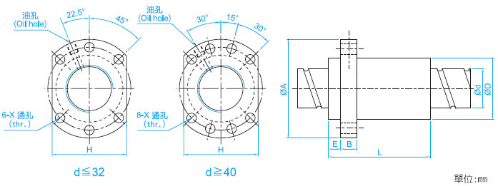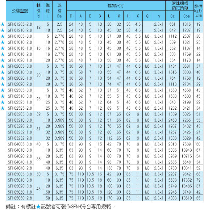 2.SFS與SFH/SFNH的尺寸區別,H型螺母法蘭旁凸出來一截(E),其他尺寸和S型是一樣的。
