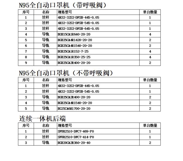 N95全自動口罩機TBI導軌絲桿型號價格